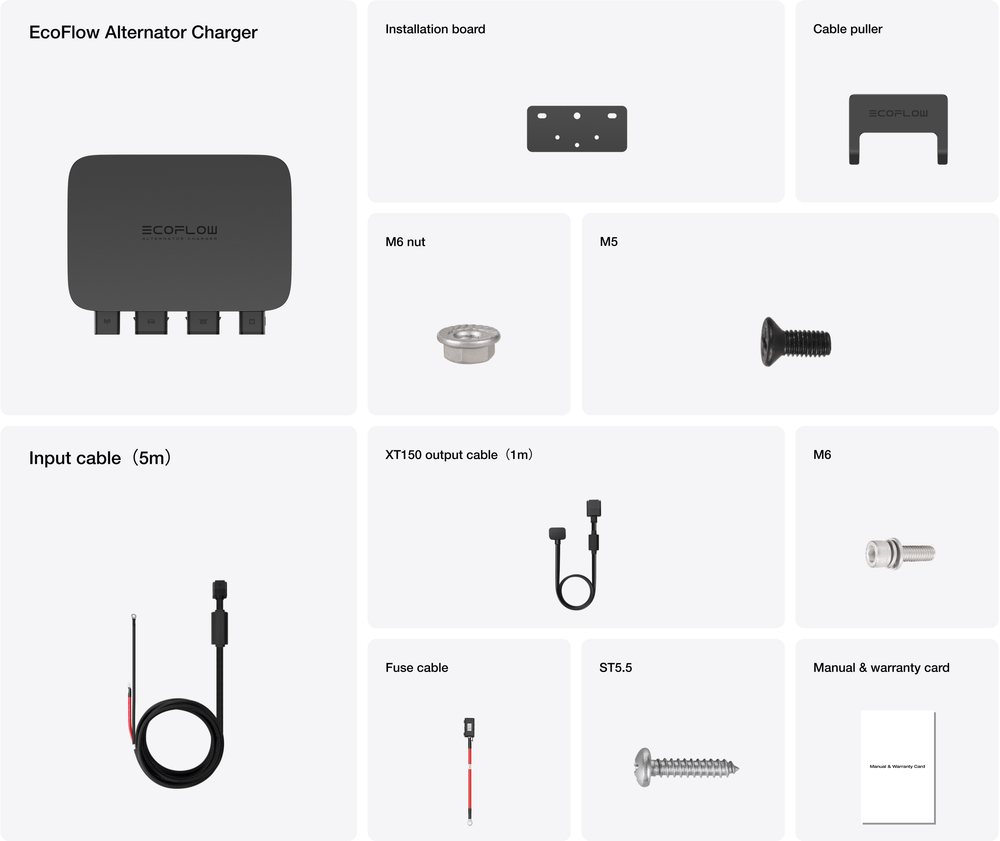 *The 800W Alternator Charger comes with an XT150 cable to pair with EcoFlow DELTA Series products. An additional purchase of XT60 cable is required for wider compatibility.
