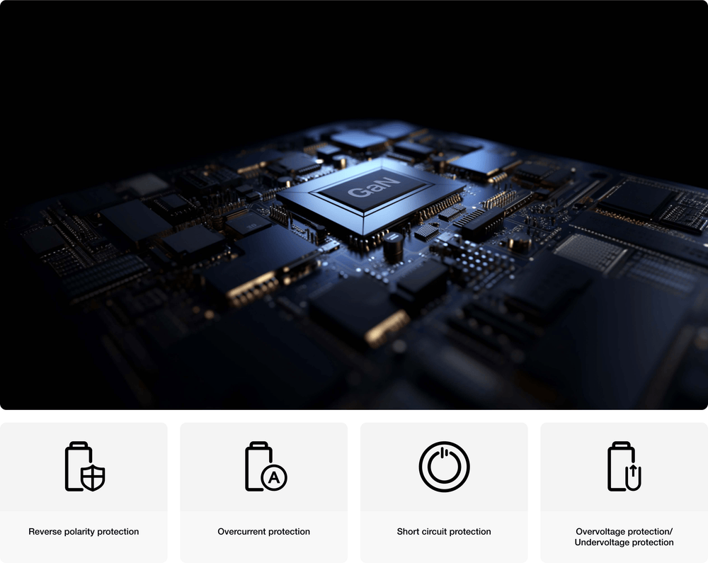 With a high thermal resistance, Gallium Nitride (GaN) technology ensures safe charging every single time.The 800W Alternator Charger offers multiple safety features, including undervoltage protection that prevents excessive energy use and damage to the starting battery. A 2-year warranty ensures your experience and peace of mind.
